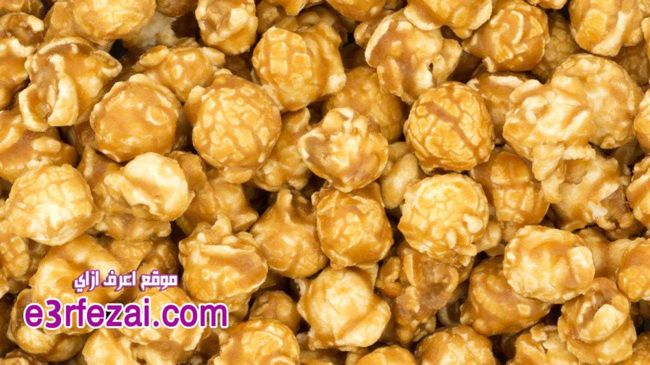 - ضع الفشار في وعاء كبير وتقطر عليه الشراب
