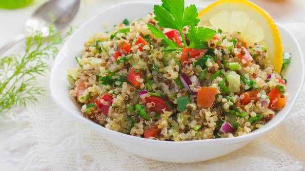 مصنوع من خيرات الكينوا والهليون والعدس والرمان وبعض صلصة الخردل المنعشة وعصير موسامبي . هذا واحد هو معززة السلطة الحقيقية. الكينوا غنية بالبروتين ، وخالية من الكوليسترول ، وخالية من الغلوتين ، ووجبة غذائية منخفضة. وهو مصدر ممتاز للعديد من المواد الكيميائية النباتية الهامة وفيتامين إي. وهو غني بالدهون الصحية أيضًا.
